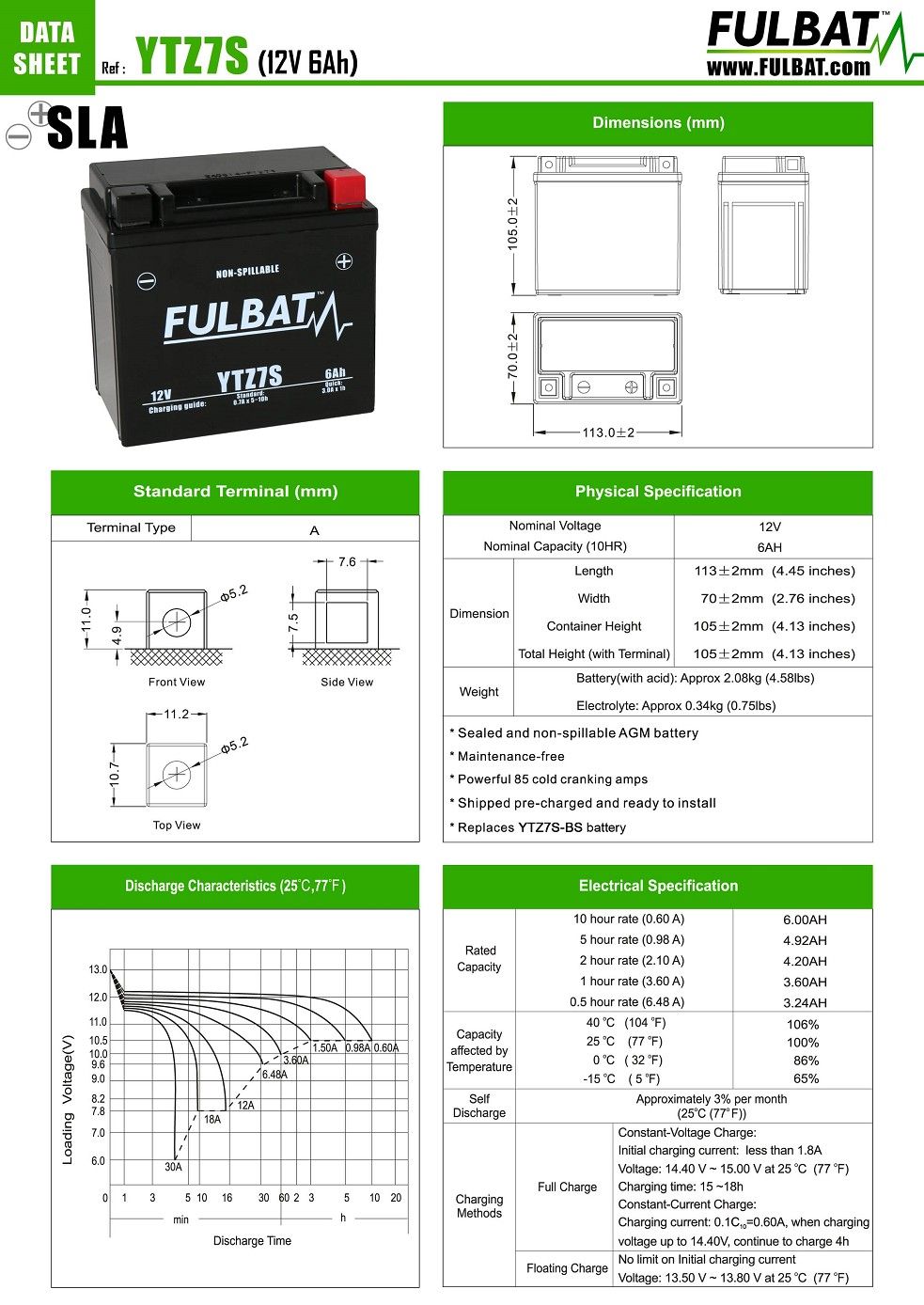 Capacity (10h): 6Ah