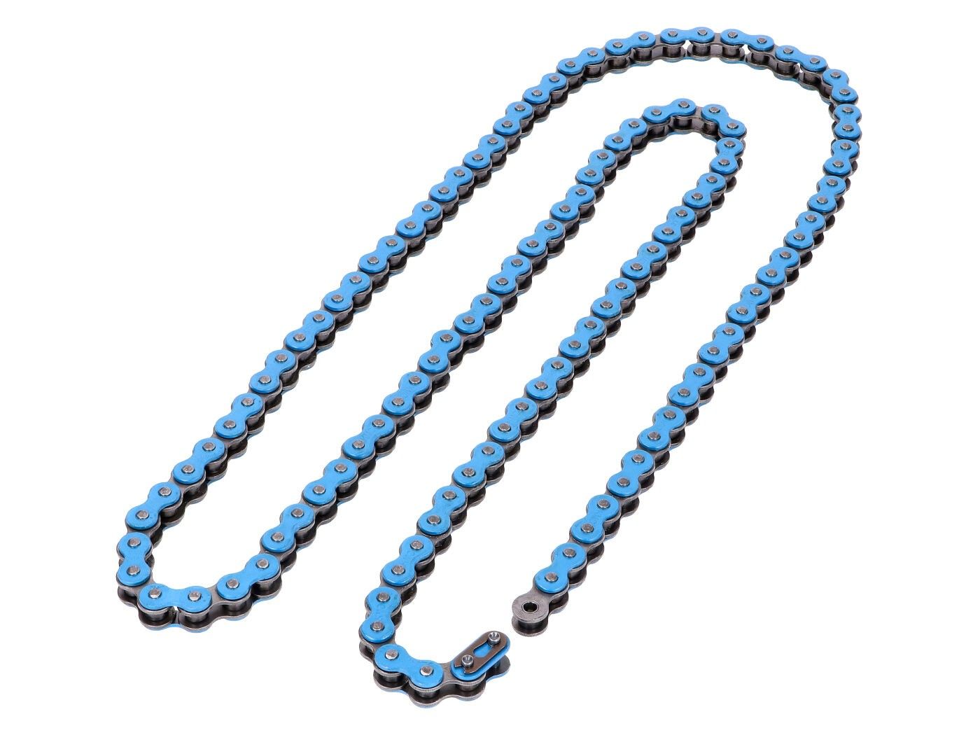 Reinforced universal replacement chain from KMC with 120 links in blue. A reinforced chain is absolutely necessary, especially with tuned engines!