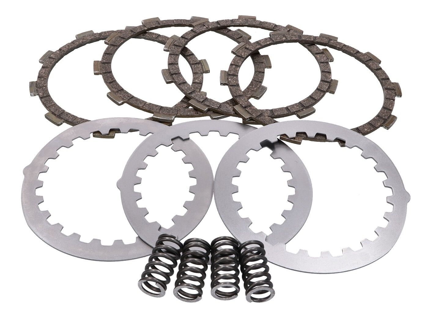 A set of reinforced clutch plates from Italian tuning specialist Top Performances. The set consists of 4 high-quality friction discs with steel plates and a set of reinforced clutch springs. The clutch springs increase the pressing force and thus allow greater forces to be transmitted without slipping. Perfect for displacement expansion or to increase the durability of the clutch in daily use.