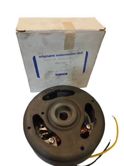 Original magneto ignition for Tomos CTX 80, designed to ensure reliable engine ignition and proper operation of the electrical system. Ideal for moped restoration or maintaining the original condition.