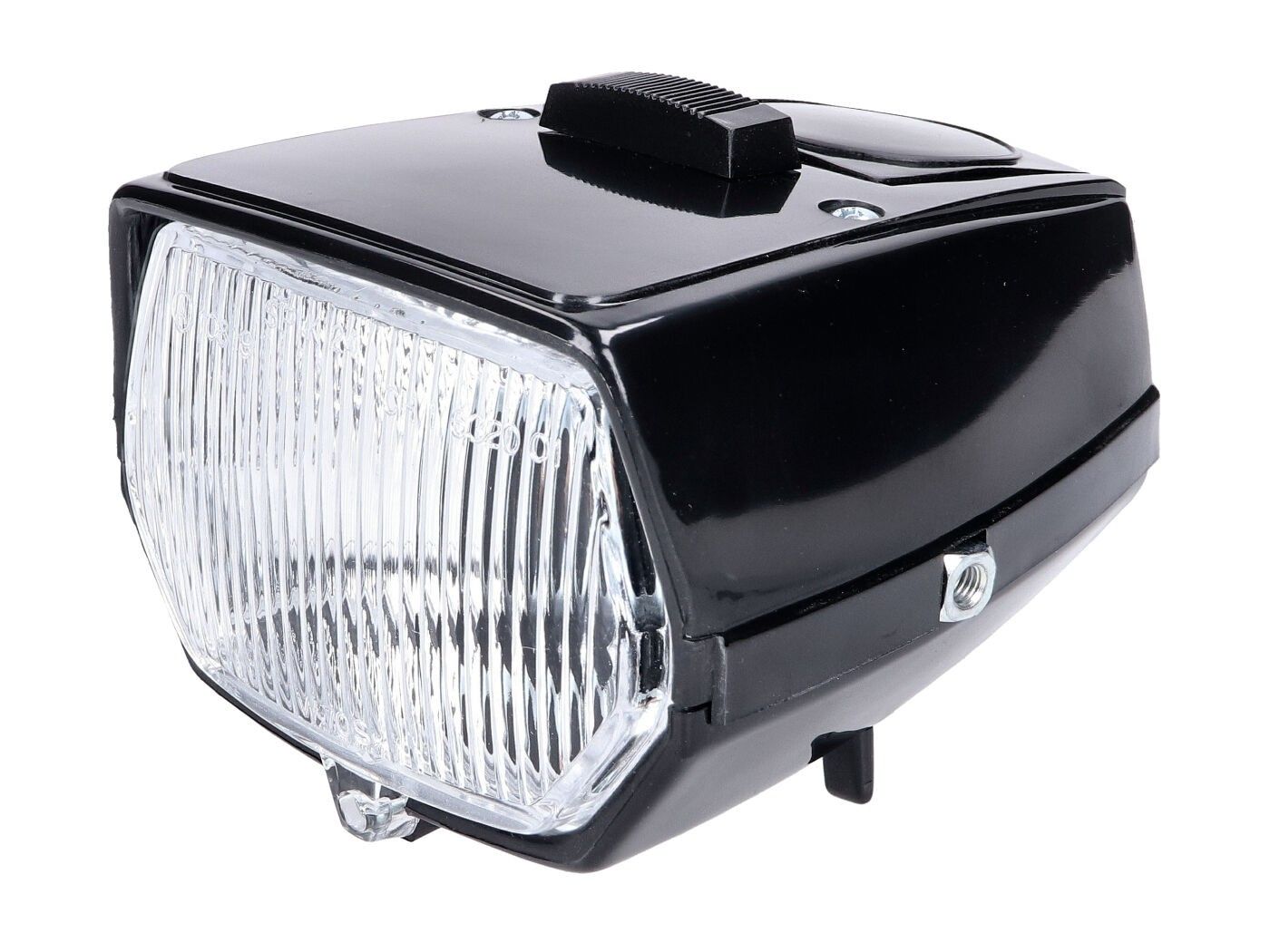 Headlight can easily be exchanged for the original. The headlight also offers the possibility to install the speedometer by removing the black cover.