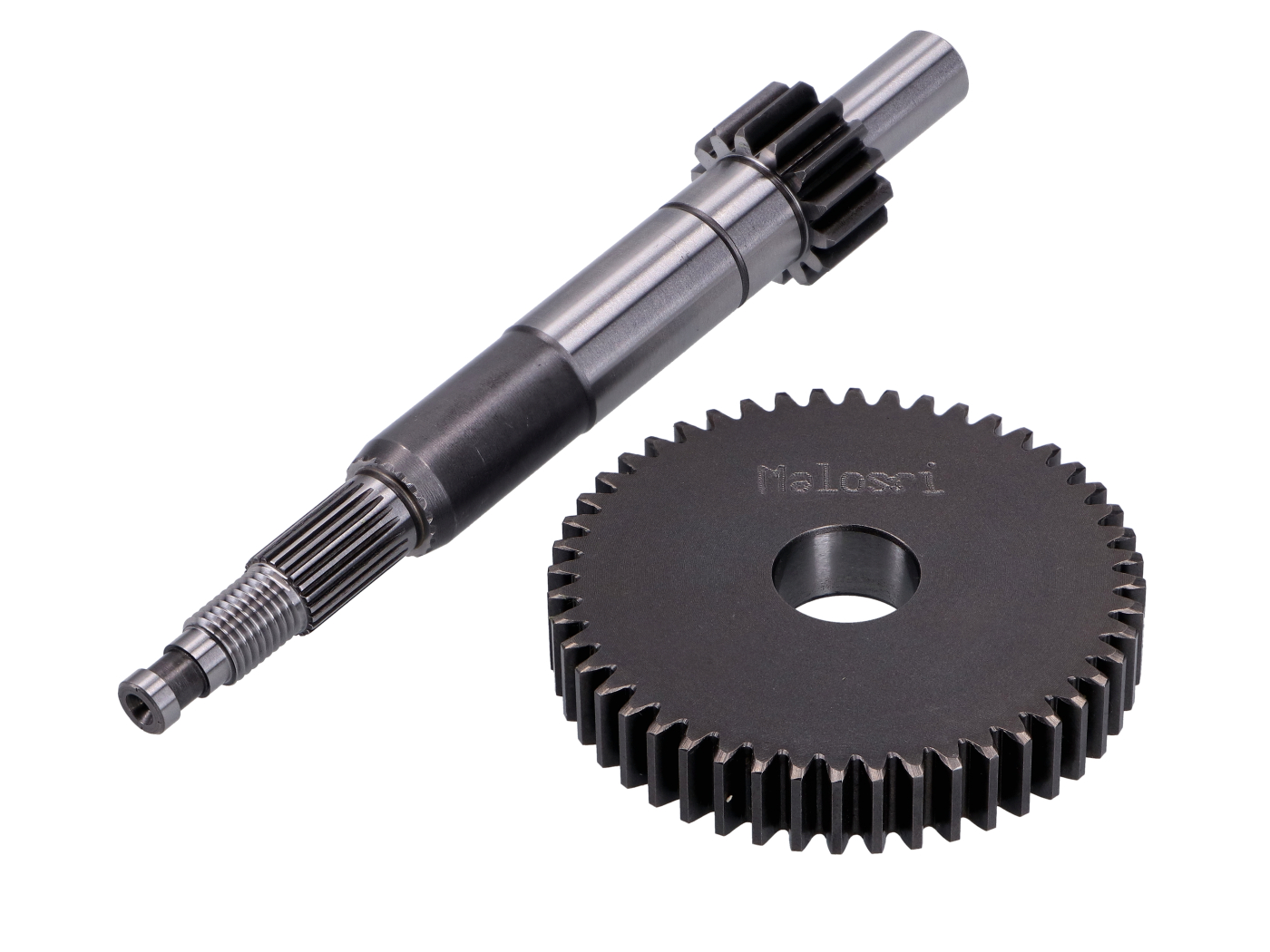 The Malossi HTQ primary gear set with a 14/48 ratio is designed for Piaggio TPH, Derbi Variant, Aprilia SR Motard, Scarabeo, and Gilera DNA models. Replacing the primary transmission is essential on many scooters to achieve a higher top speed, with a longer gear ratio being especially suitable for modified engines.