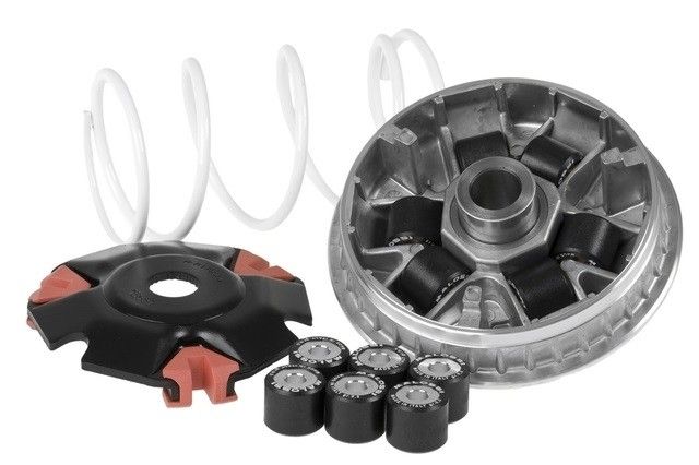 Malossi Multivar 2000 “maxi-torque” converter for larger capacity machines. Sinter metal, self-lubricating anti-friction bush with coated-steel hub and hard, polished and lapped chrome gliding surface. Improved pull, increased top speed, smooth drive, and solid performance at higher speeds.