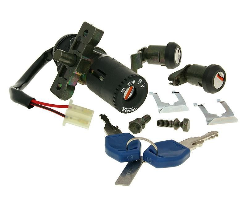 Complete igntion lock set for Honda NES@ 125 and 150. Excellent quality and price making this a perfect choice from the usually expensive OEM parts. This lock sets cover all the locks and locking systems found on your vehicle and come with two new keys. Generally no alterations are required. Supplied as shown, but manufacturer alterations may apply. 35010-KGF-900.