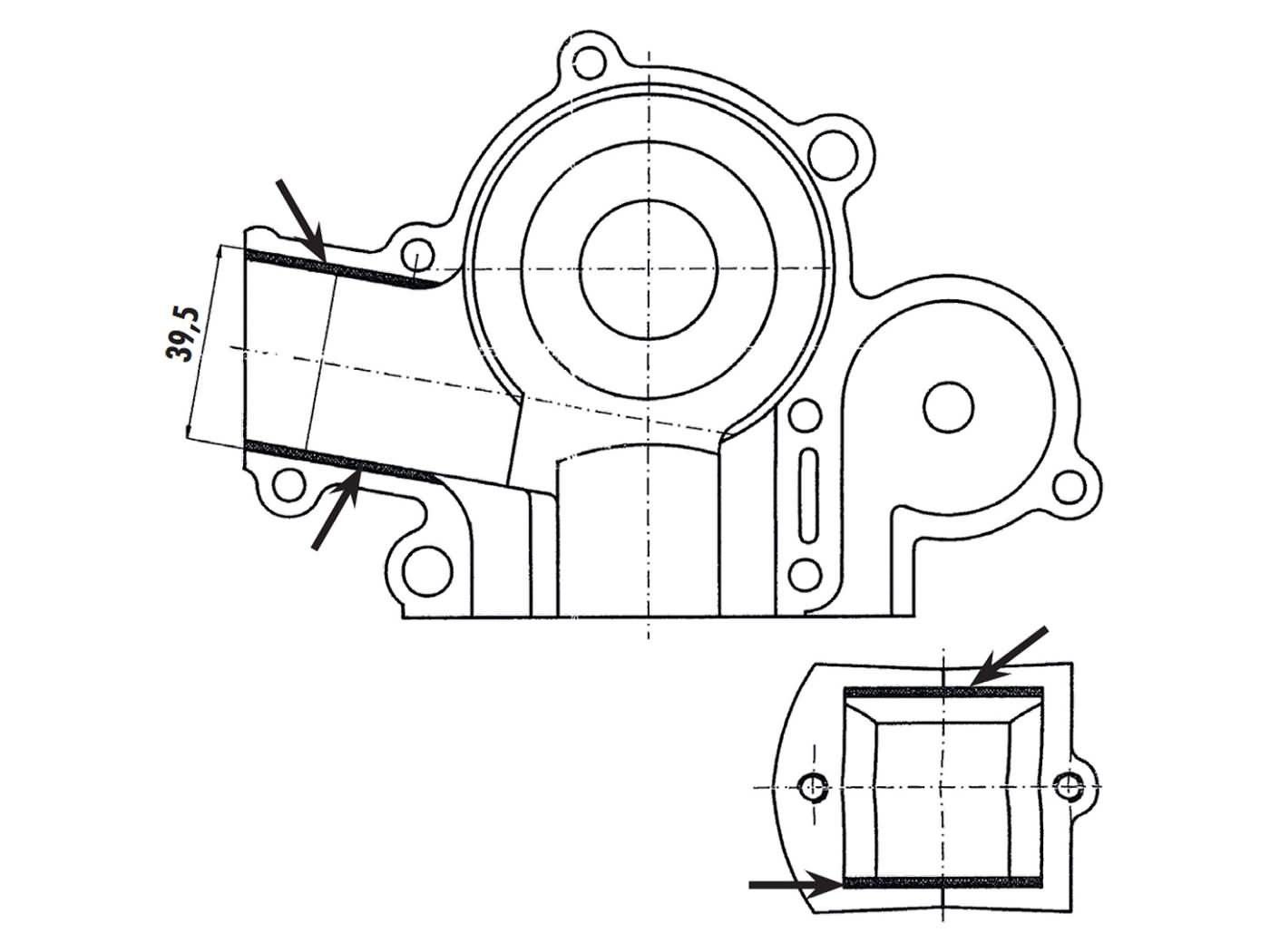 To be able to mount the diaphragm block, the engine case must be modified.