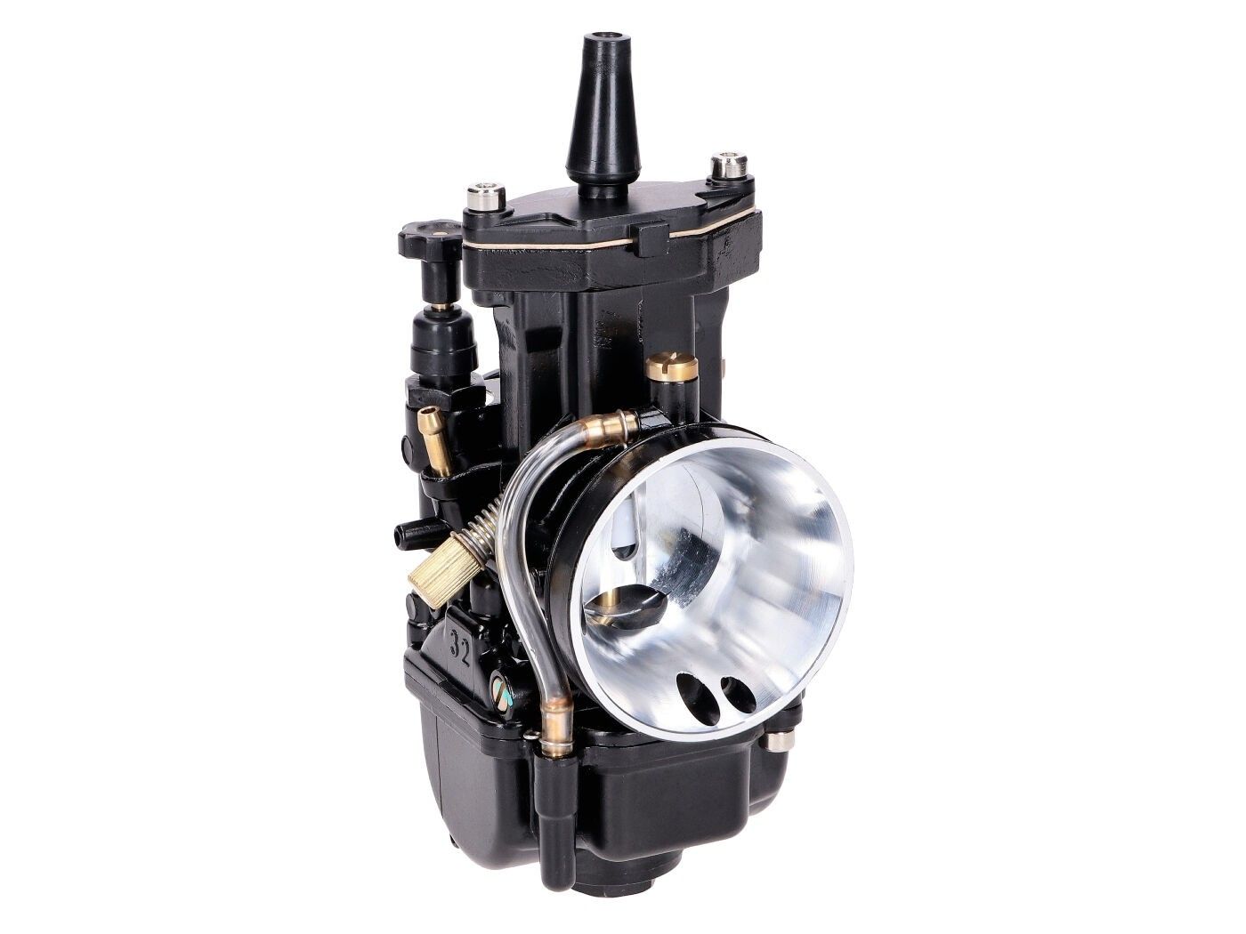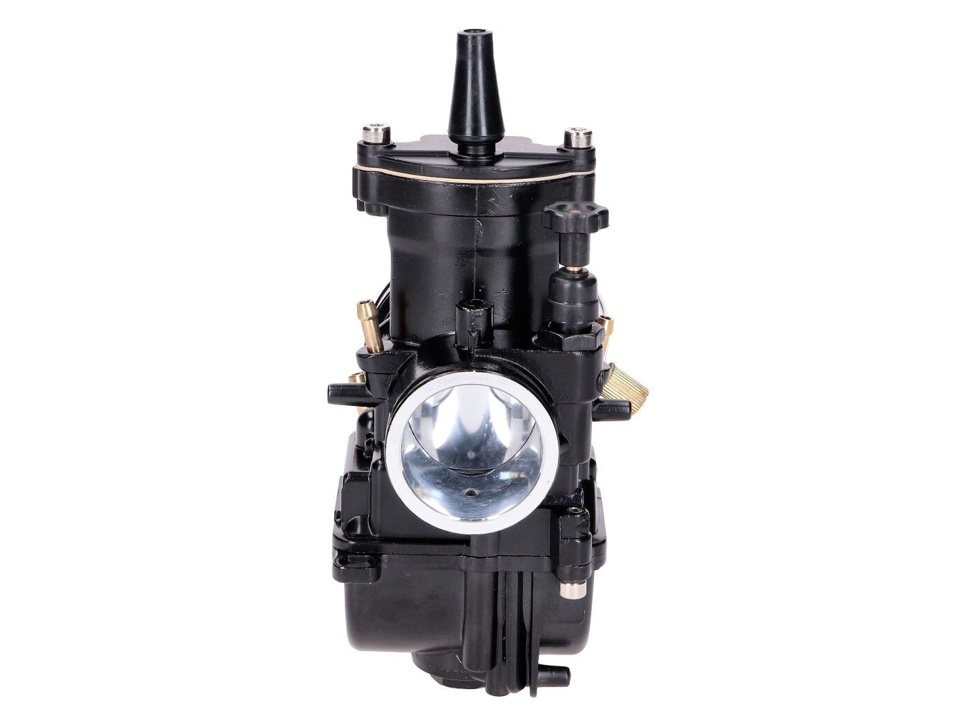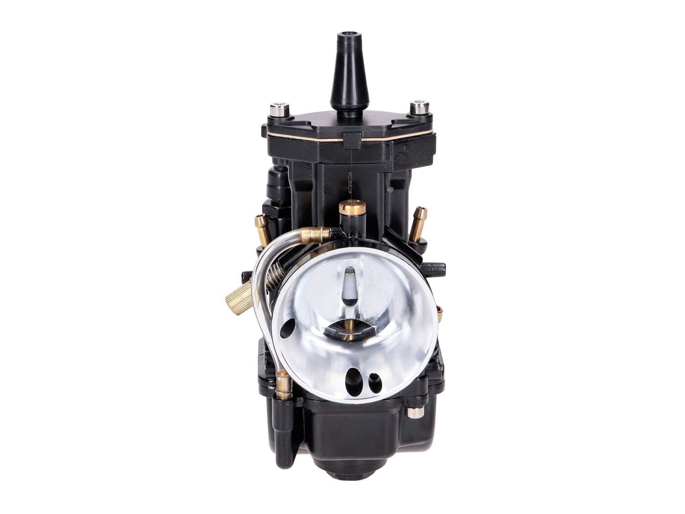. With the numerous main and auxiliary jets, carburetor needles and other accessories available for PWK carburetors, all options are available for clean tuning. An underestimated feature is the adjustment of the mixing tube, this affects, for example, the correction air / brake air with the slide fully open both at low and high speeds. The fuel/air ratio should remain constant at all engine speeds. Without air correction, the amount of fuel would increase faster than the amount of air as the speed increased while the slider was fully open. The result would then be to rich mixture at high speeds.