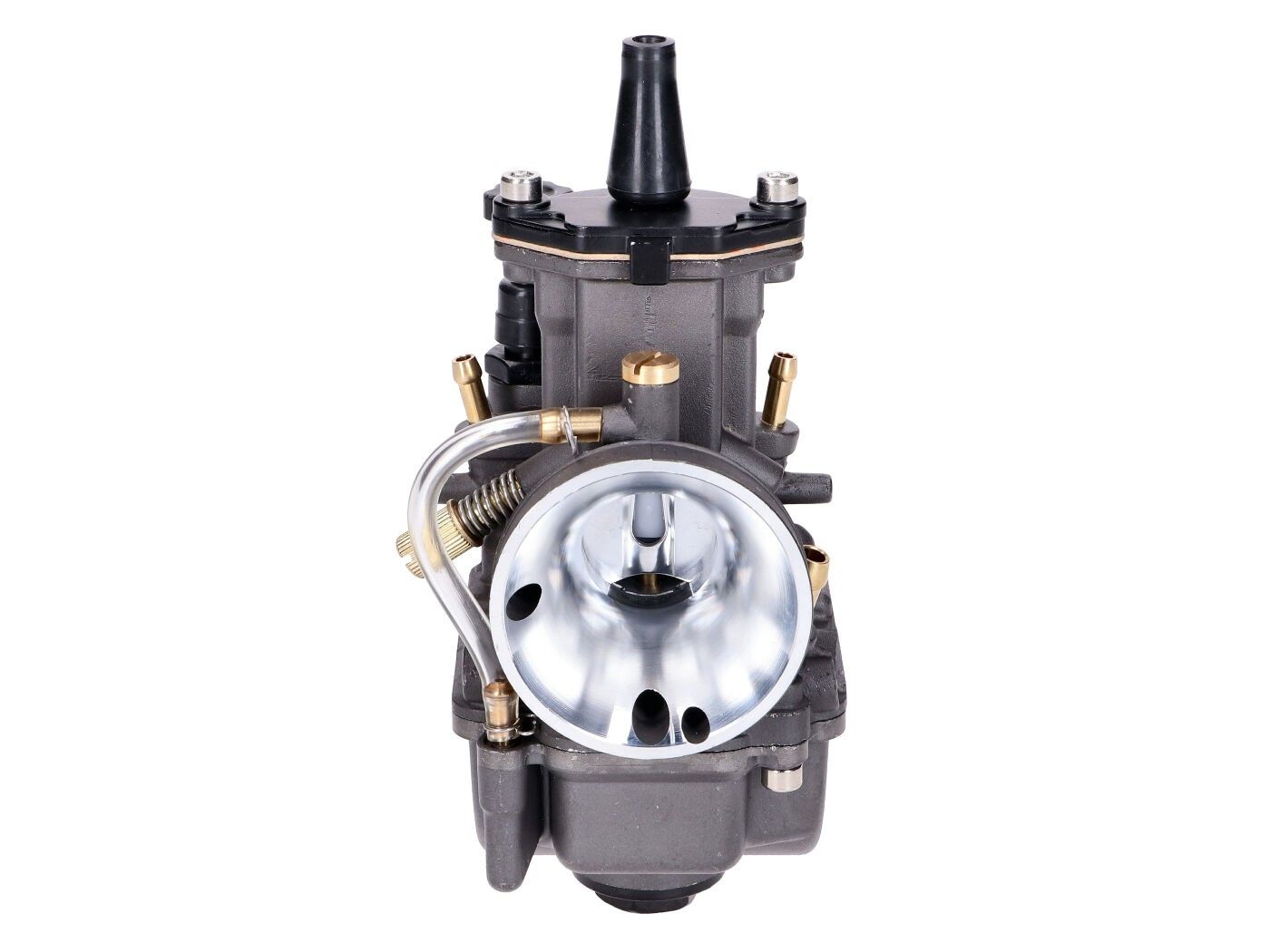 The flat‑slide V.2 Racing carburetor in the exclusive Gunmetal Edition, designed for tuning projects where increased displacement (50–70 cc) demands higher fuel and airflow. CNC‑machined intake tract and integrated Powerjet ensure optimal throttle response and strong high‑RPM performance scooterdynasty.com+13racingplanetusa.com+13frcomoto.com+13.