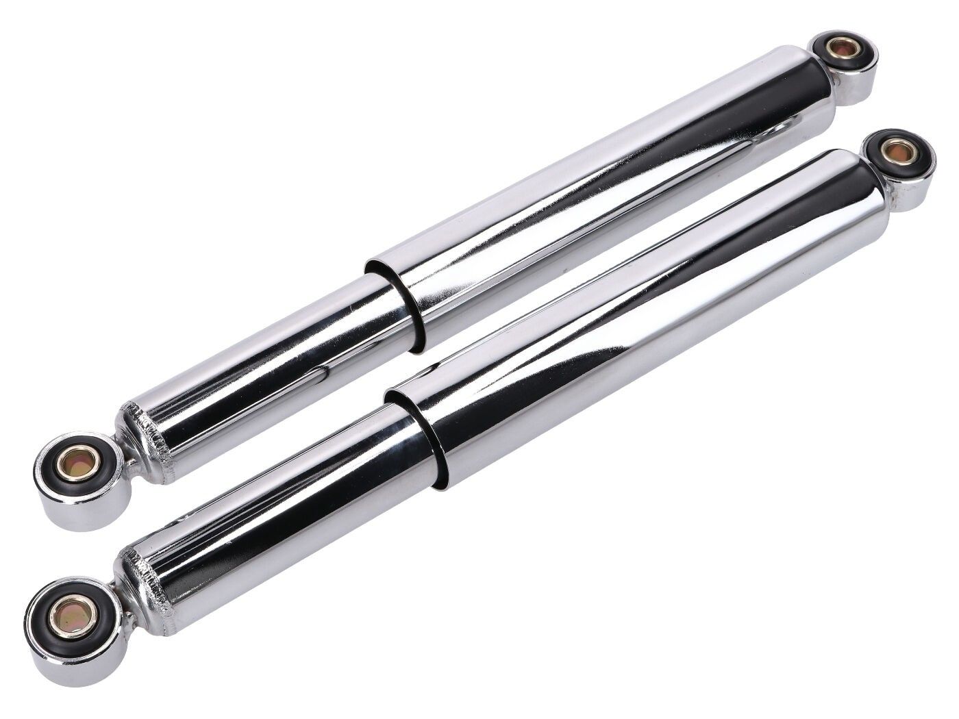 Set of two shock absorbers with a chrome finish. The dampers are designed in a classic and closed look without externally recognizable spiral springs. This results in a very classy vintage look.